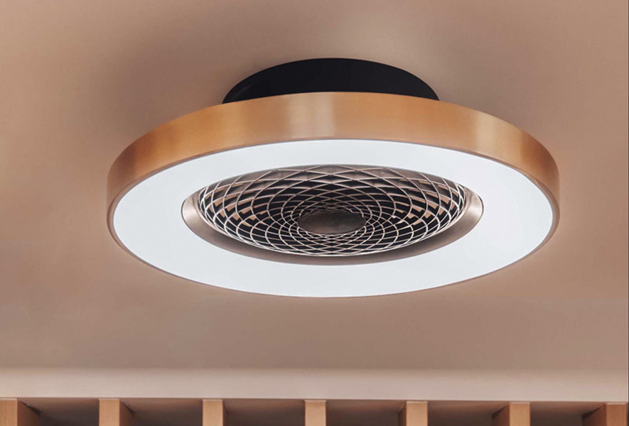 Nuestra última propuesta pasa por una apuesta por el metal, los tonos oscuros y la elegancia mezclada con lo clásico. Con una potencia de 20W, entre 220 y 240V, 1700lm, luz regulable entre 3000-5000K y unas medidas de 45x132cm, el Ventilador Schuller es ideal para estancias con menos necesidades de refrigeración o en las que sea más importante la distribución del aire que la propia refrigeración.